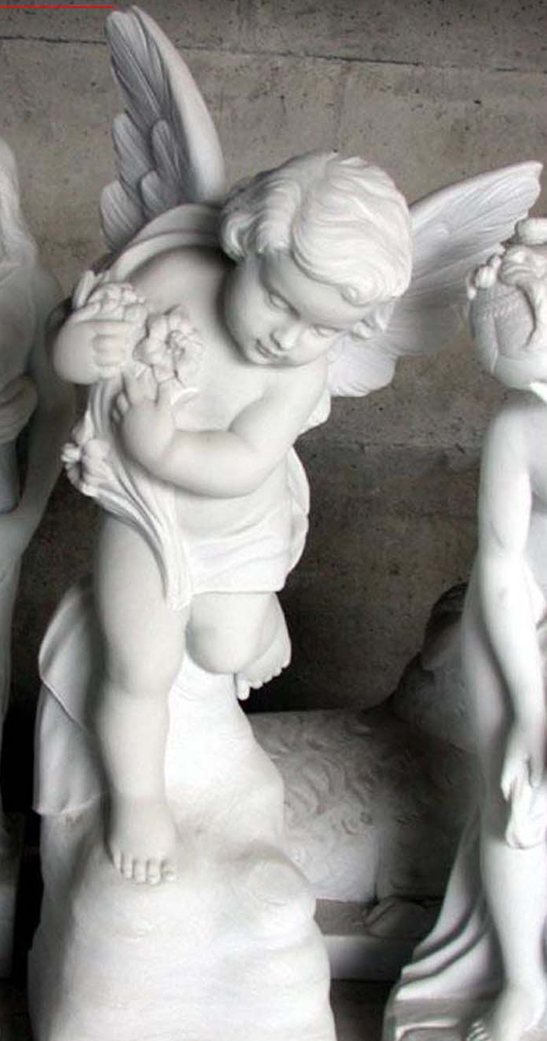 We offer traditional Italian baroque angels carved from Carrara marble blocks quarried in the mountains of Carrara, Italy – a valley famous for its marble blocks used by Michelangelo for the Pieta and every major work including the David. These hand carved sculptures are created by master stone carvers in studios walled by the Apuan Alps to the east and the Ligurian Seato to the west.